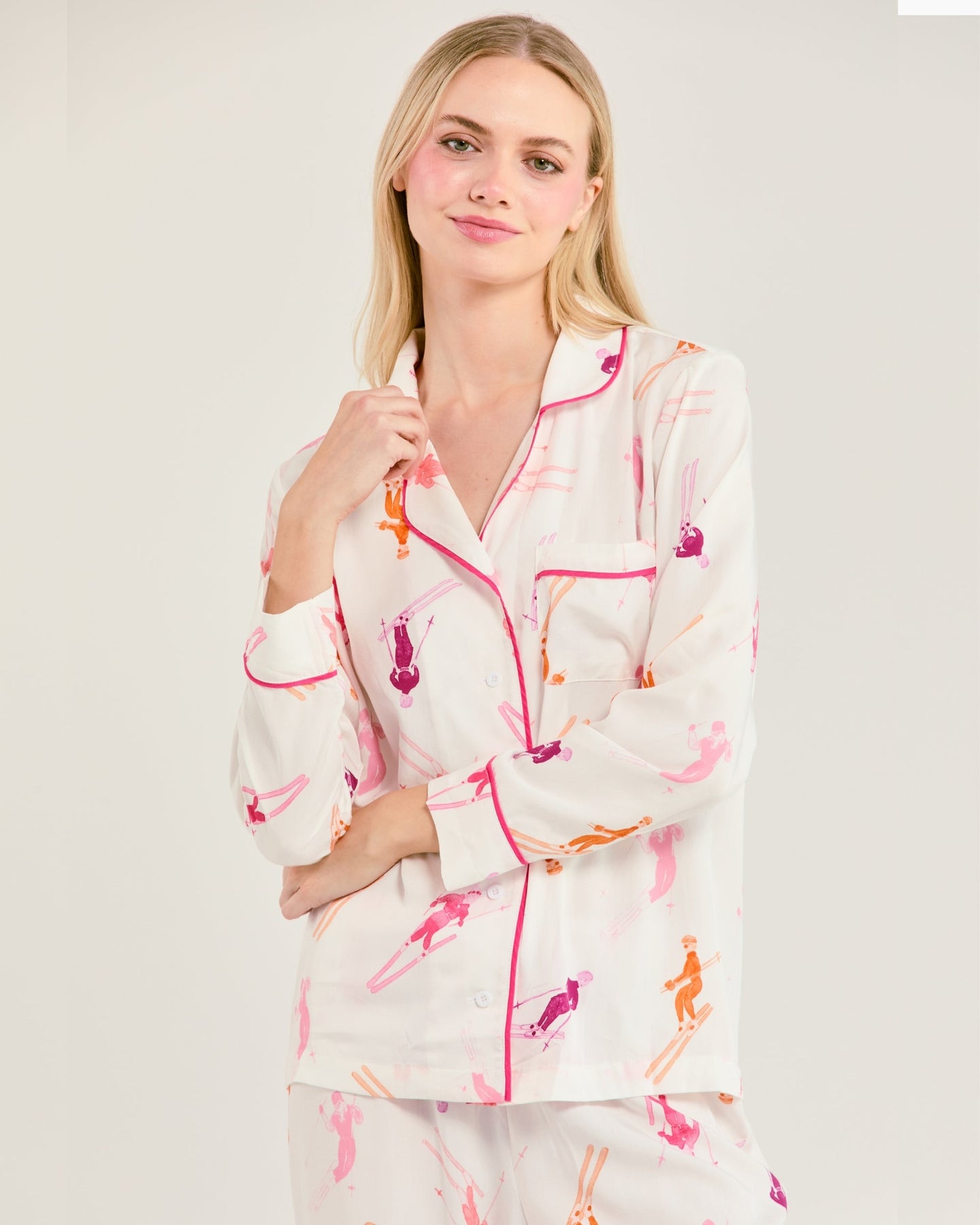 A print that pays homage to ski days when not only are the conditions perfect, everything is.