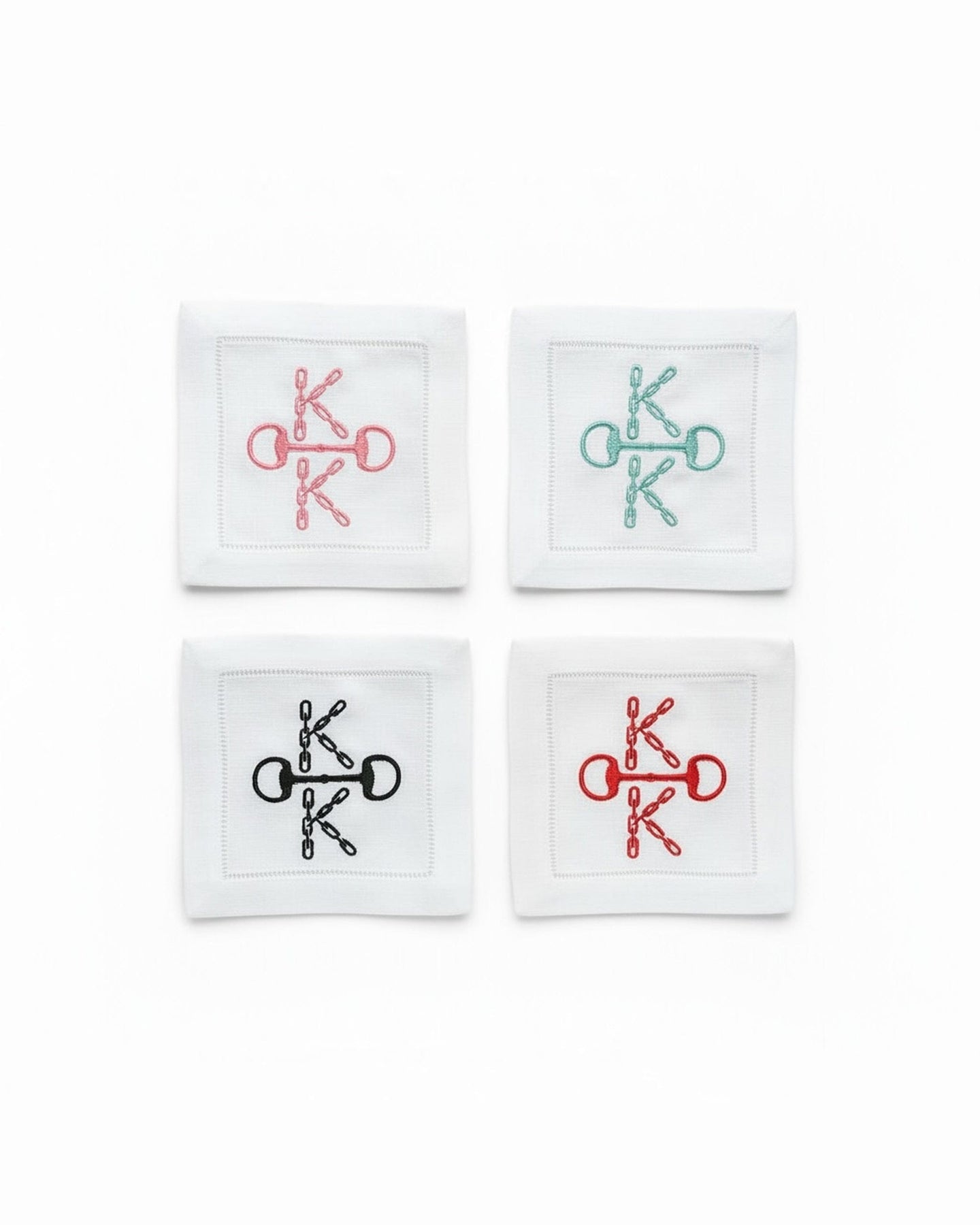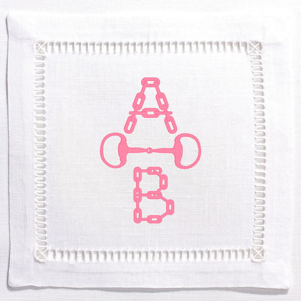 Hemstitched Embroidered Cocktail Napkins- Chain Bit Monogram