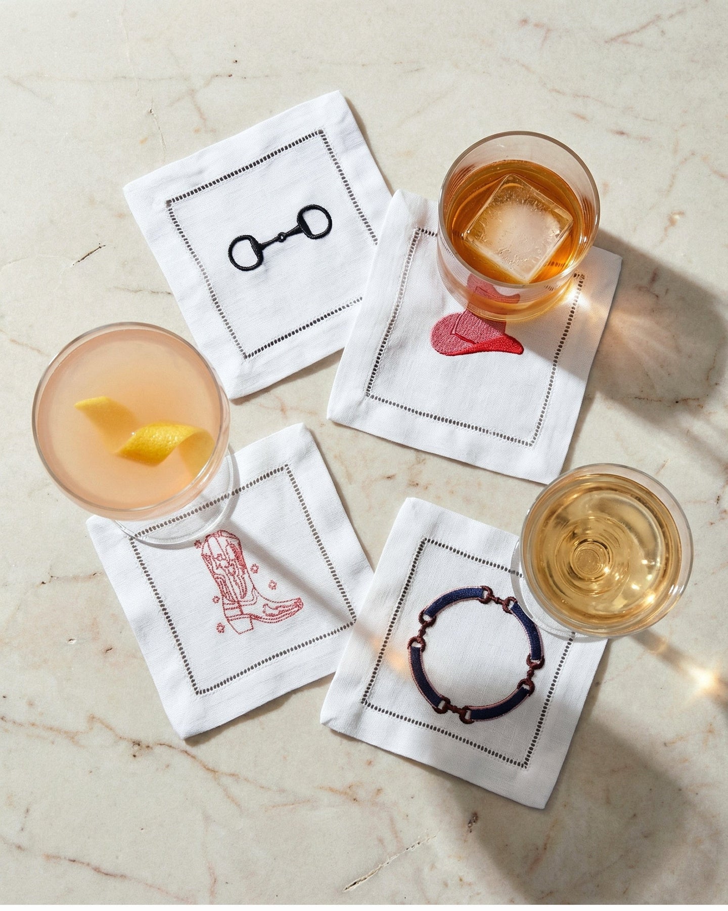 An embroidered linen cocktail napkin? It just so happens to be our favorite party trick. Sold as a set of four, these cocktail napkins are an easy way to elevate any gathering and make a thoughtful, personalized gift for the hostess. Crafted in a linen-cotton blend for everyday entertaining.