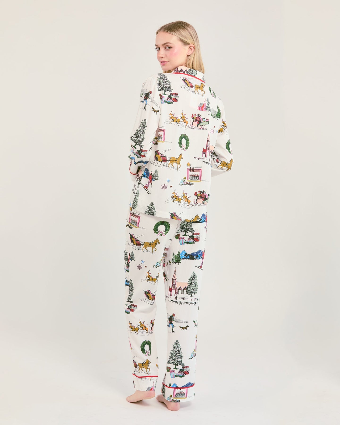Holiday Toile Long Sleeve Pajama Pants Set