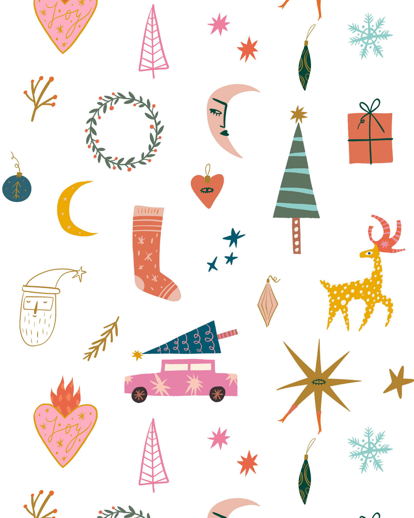 The Katie Kime Mod Holiday print is a colorful wink to festive memories, this nostalgic print captures the joy of the season—then and now.