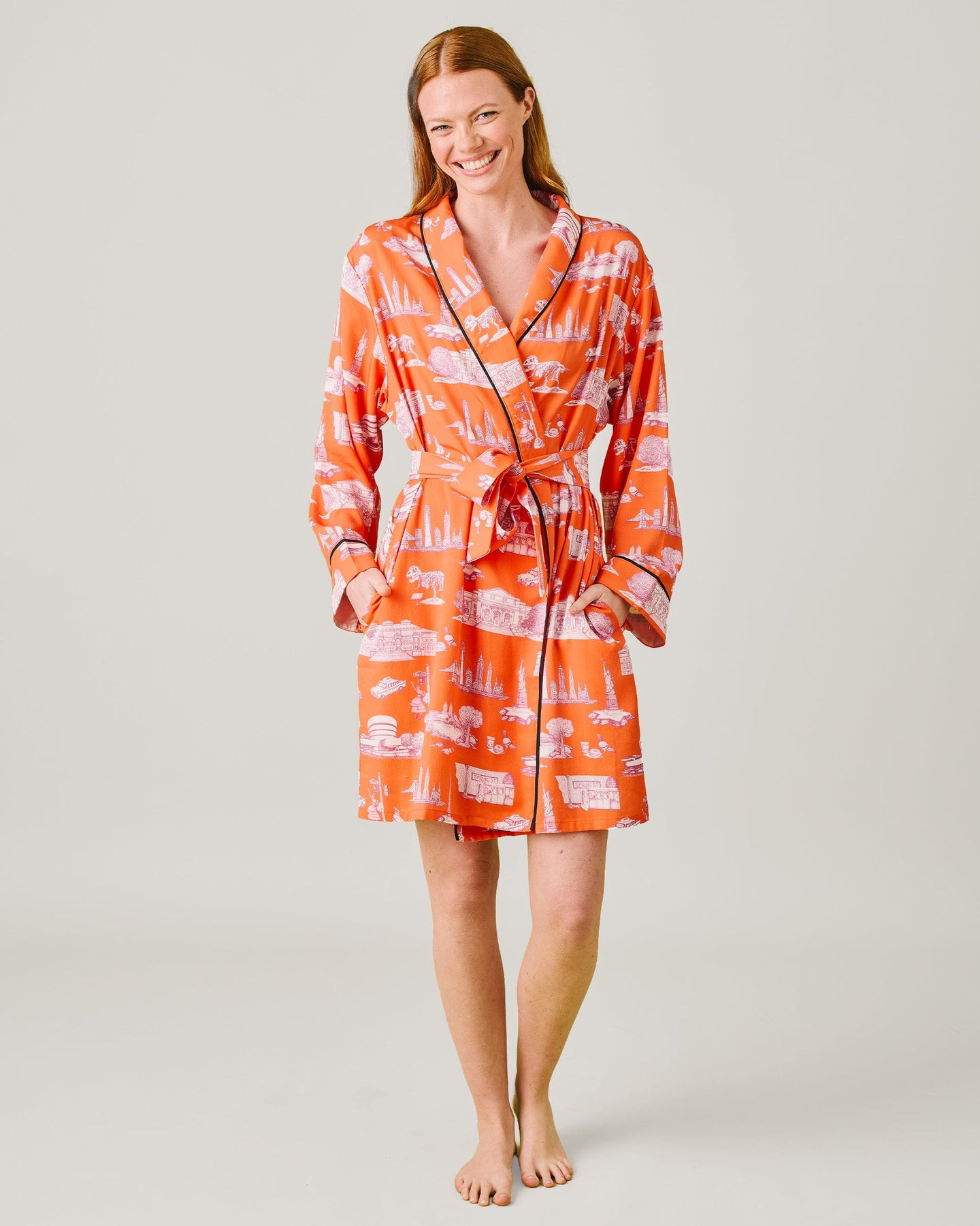 New York Toile Lounge Robe Robe Orange / One Size Fits Most Katie Kime