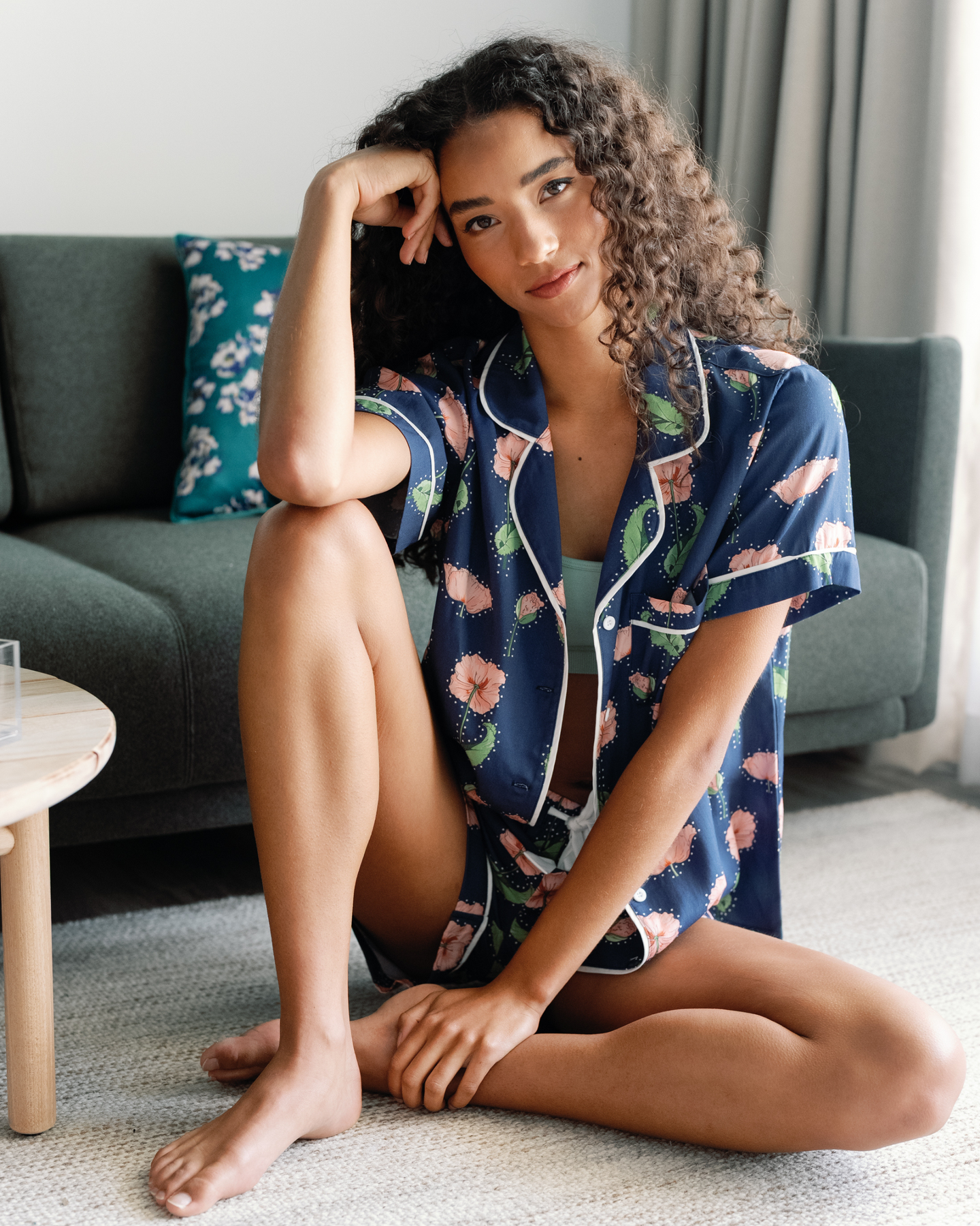 Rhinestone Flower Pajama Shorts Set