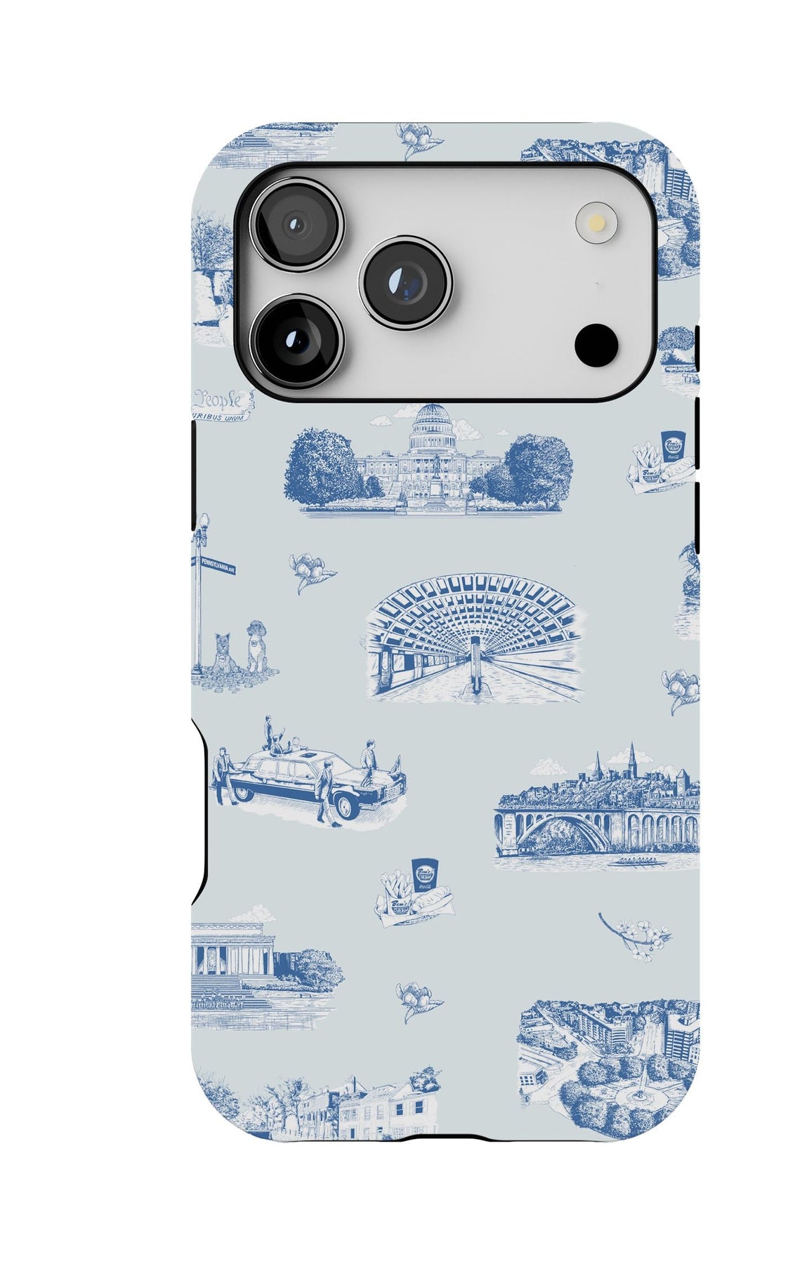 Washington DC Toile iPhone Case Phone Case Light Blue Navy / iPhone 16 Pro Max / MagSafe Tough Katie Kime